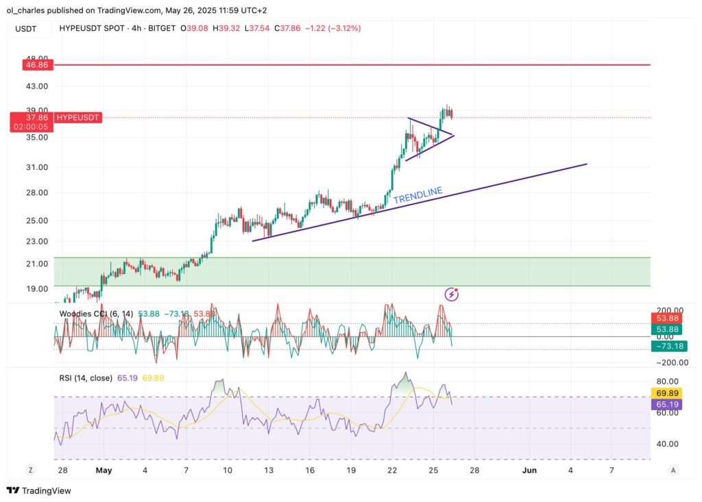Les investisseurs en crypto suivent avec attention l’évolutiond’Hyperliquid (HYPE), qui connaît une ascension fulgurante ces derniers mois. Après avoir touché un creux à 9 $ en avril, HYPE a récemment atteint un sommet intraday à 39,6 $, soit une hausse de plus de 315% en seulement quelques semaines.