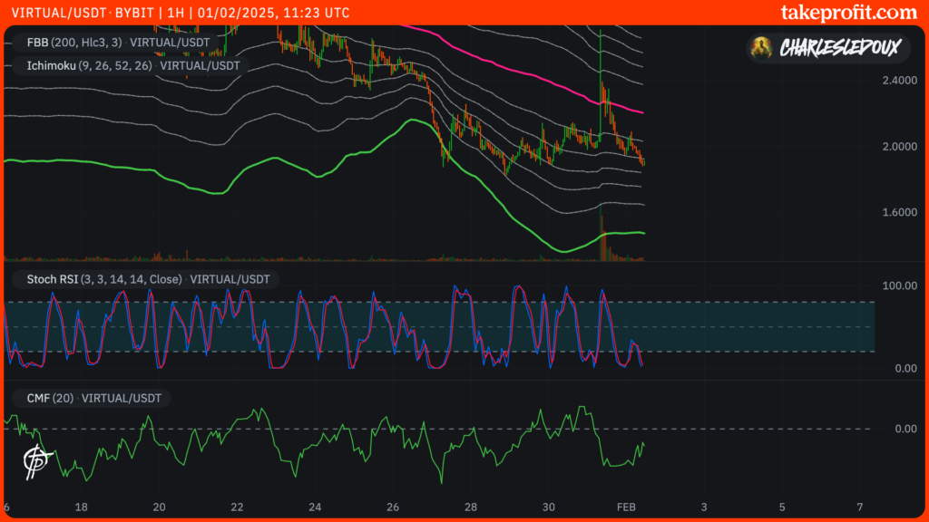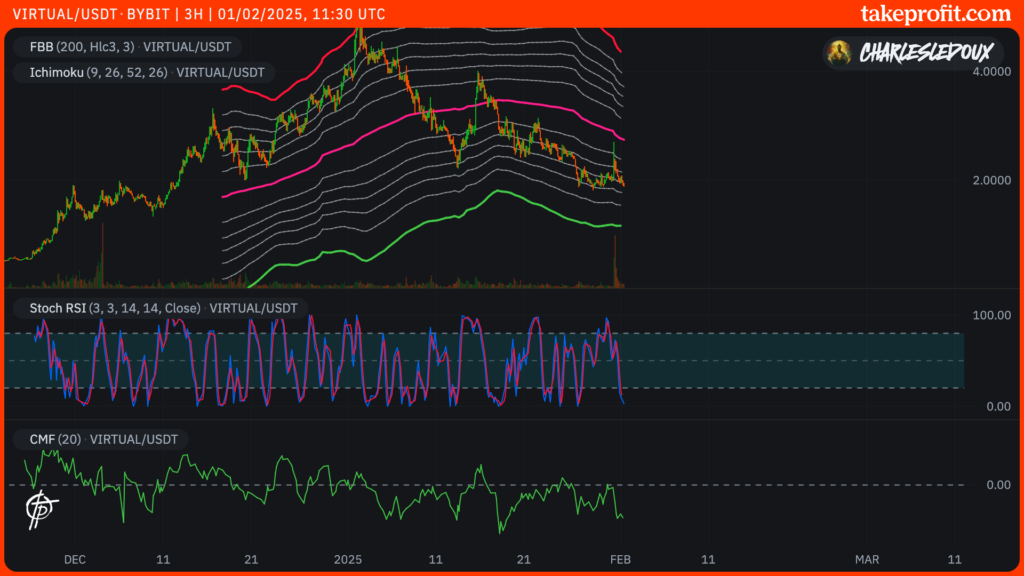 Depuis, le concurrent de AIXBT a chuté de 21% pour revenir à un prix de 1,89 dollar. Il revient donc proche de son précédent support de 1,83 dollar. Toutefois, le jeton pourrait bien aller chercher plus bas dans la zone protégée, indiquée sur le graphique ci-dessus.
