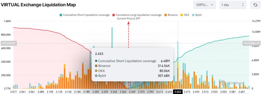 Outre cette forte entrée de liquidités, d’autres indicateurs on-chain poussent vers une dynamique baissière pour VIRTUAL à court terme. Par exemple, l’Open Interest (OI) a bondi de 25%, témoignant de la formation de nouvelles positions, principalement spéculatives.